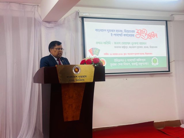 ByNRBGTV কনটেন্ট কাউন্সিলরমঙ্গলবার, ৩ ডিসেম্বর, ২০২৪এক অনাড়ম্বর অনুষ্ঠানের মধ্য দিয়ে ৪৮তম মিশন হিসেবে ২২ নভেম্বর ভিয়েতনামের হ্যানয়স্থ বাংলাদেশ দূতাবাসেই-পাসপোর্ট সেবার শুভ উদ্বোধন করা হয়। দূতাবাসের কর্মকর্তা-কর্মচারী, ইমিগ্রেশন ও...