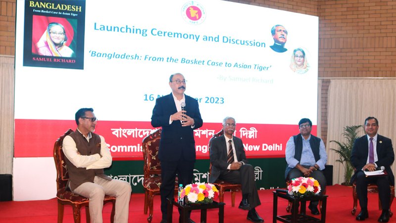 নয়াদিল্লিতে বাংলাদেশ হাইকমিশনের উদ্যোগে মিশনের বঙ্গবন্ধু হলে গত বৃহস্পতিবার স্যামুয়েল রিচার্ড-এর ‘বাংলাদেশ: ফ্রম বাস্কেট কেইস টু এশিয়ান টাইগার’ শীর্ষক বইয়ের মোড়ক উন্মোচন করা হয়েছে। বইটিতে প্রধানমন্ত্রী শেখ হাসিনার নেতৃত্বাধীন আওয়ামী লীগ সরকারের আমলে বিভিন্ন খাতে অর্জিত বাংলাদেশের অভাবনীয় সাফল্য ও উন্নয়নের অগ্রগতি তুলে ধরা হয়েছে।
